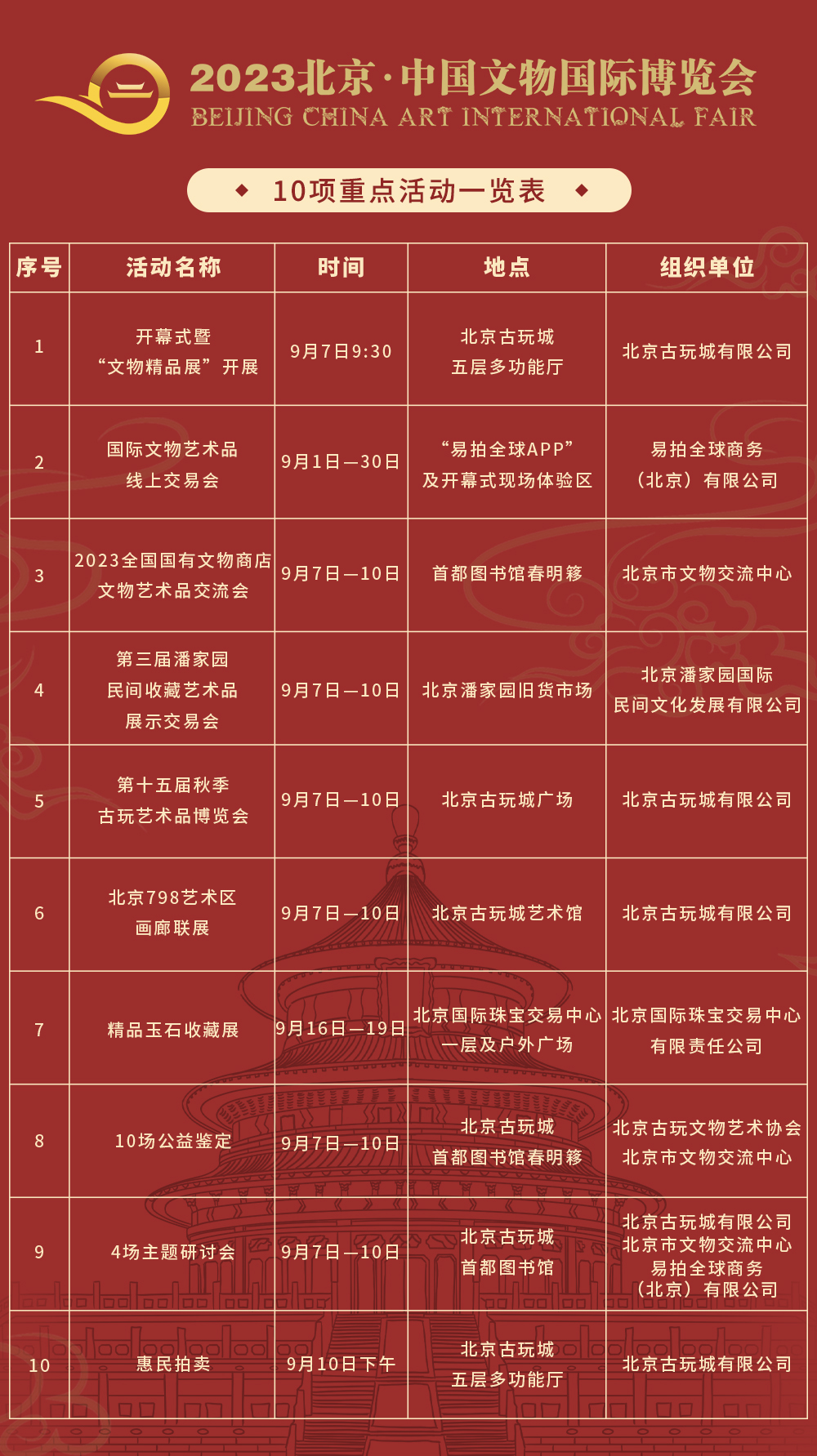 2023北京·中国文物国际博览会(以下简称文博会)是由北京市文物局主办的一场文物艺术品交易盛会。本届文博会紧紧围绕“收藏:让人民生活更美好”主题,以推动国际化、提升数字化、促进生活化为主要抓手,采用线上+线下的办会方式,通过集中推出10场重点活动,进一步扩大北京作为国际文物艺术品交易中心的影响力,体现北京作为文物艺术品行业龙头的城市实力、凝聚力和数字化交易能力。