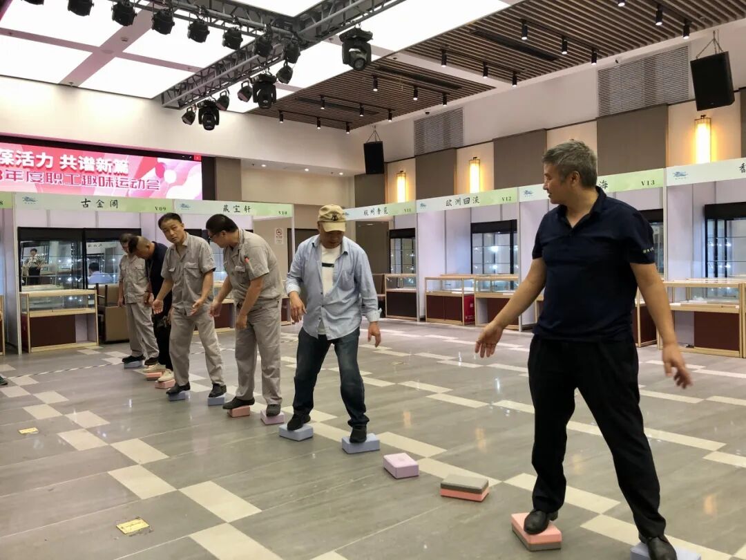 个人赛上,为了让更多的乒乓球弹进指定位置,大家在90秒内边动手边动脑,不断调整抛掷的力度和角度,简单好玩的“弹球入框”吸引大家排队参加。另一边在欢快的背景音乐下,“电臀达人”引起阵阵欢呼,大家使出浑身解数一起摇摆将球摇出,“曼妙”的舞姿逗得观众们捧腹大笑。