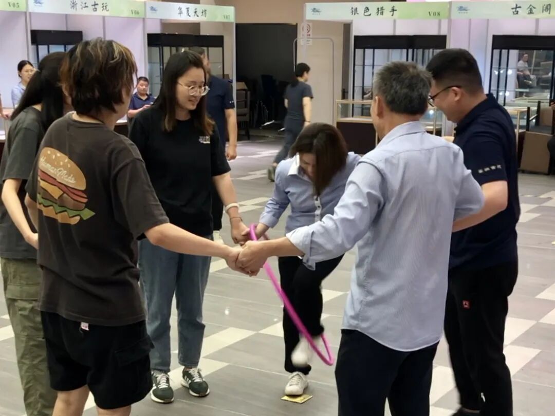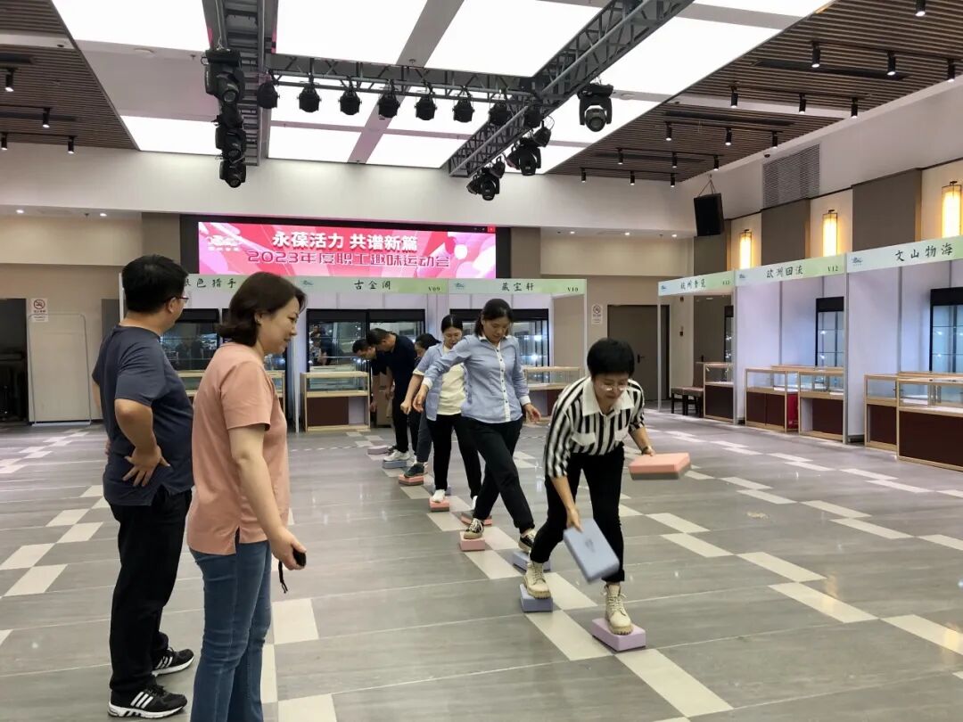 比赛在一片热烈欢快的气氛中拉开帷幕。本次运动会设团体2项、个人2项,共4个趣味项目,分别是团体赛“一圈到底”、“搭桥过河”和个人赛“弹球入框”、“电臀达人”。