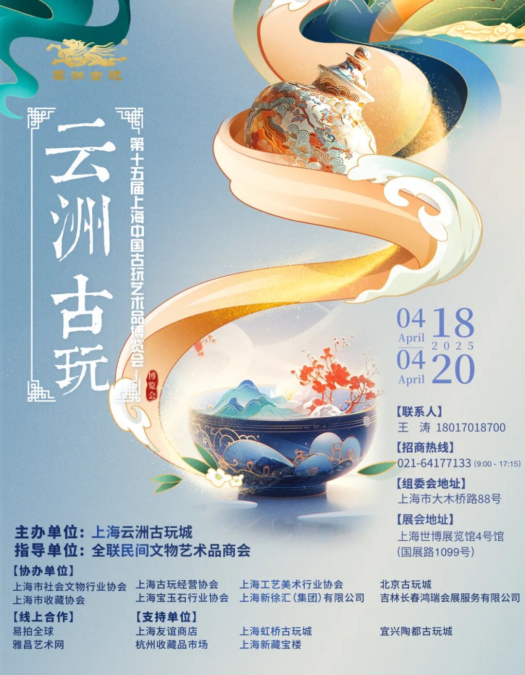 由上海云洲古玩城主办、全联民间文物艺术品商会指导的第十五届上海·中国古玩艺术品博览会(以下简称古博会),将于2025年4月18日至20日在上海世博展览馆4号馆隆重举办!自2008年创办以来,云洲古玩打造的古博会始终秉持上海“海纳百川、兼容并蓄”的城市精神,以创新探索的姿态践行社会责任,现已成为上海重要的文化品牌之一,更是中国古玩界极具权威性与影响力的行业盛会。