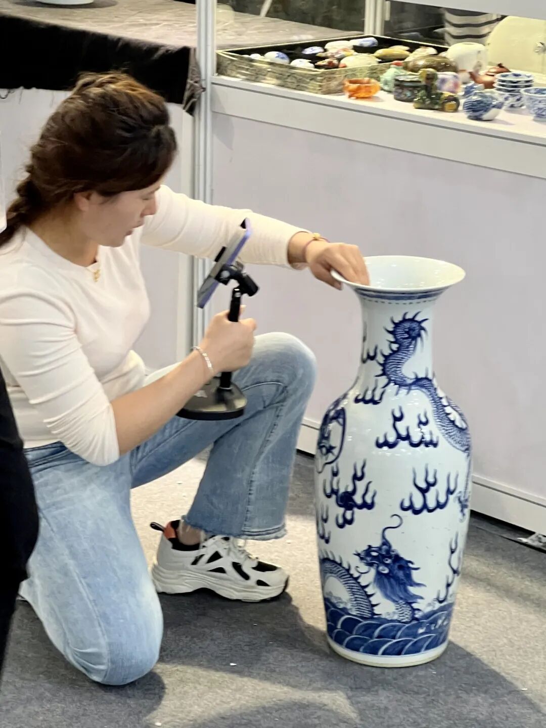 此外,本届古博会也特别注重科技与传统艺术的结合,多位博主与主播通过直播带货方式,将古玩艺术介绍给全国各地的观众,同时也实现了线上线下相结合的新一届古博会交易平台与模式。直播带货不仅使得传统艺术品能够触达更广泛的市场推广效应,还使得古玩交易过程更加透明和便捷。