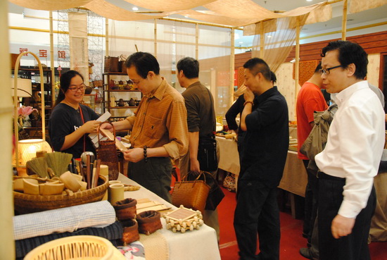 安吉岳龙扇厂带来的毛竹皮制作的折扇和屏风令人耳目一新。以竹皮的纹理和质感,制成建筑、花鸟、山水的图案,给人别具一格的感觉。另外,听竹庐带来的提梁灯在造型结构、比例、工序、编织等方面完美保留了传统器物的美,又通过再设计,创造出不同凡响的意蕴美,博得不少藏友的喜爱。
